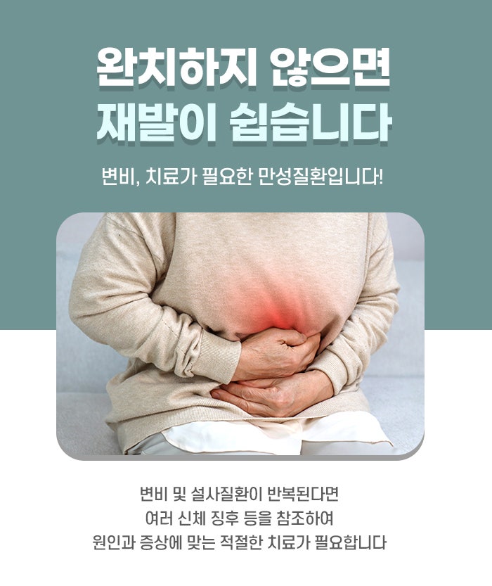 변비는 치료와 함께 생활습관 개선이 필수적입니다. 하루 1.5~2리터 이상의 물을 꾸준히 마셔야 장 내 수분 균형이 유지됩니다. 특히 아침 공복에 따뜻한 물 한 잔은 장을 깨우는 데 도움을 줍니다. 그리고 채소, 과일, 해조류, 통곡물, 콩류 등 불용성 & 수용성 식이섬유를 균형 있게 섭취하세요. 오트밀, 사과, 고구마, 미역, 양배추, 키위 등이 추천 식품입니다. 매일 아침 같은 시간에 화장실을 가는 습관을 만들어 주세요. 식사 후 20~30분은 대장의 연동운동이 활발해지는 시간입니다. 변비는 단순히 ‘변을 못 보는 문제’로만 치부하기엔 너무 많은 건강 문제와 연결되어 있습니다. 특히 만성적인 변비는 장내 독소 축적, 면역력 저하, 피부 트러블, 피로 누적 등 다양한 2차 증상을 유발할 수 있기 때문에 방치해서는 안 됩니다.