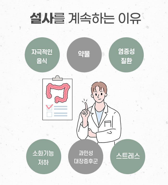 과민성대장증후군은 명확한 기질적 이상이 없으면서도 지속적인 설사와 복부 증상을 유발하는 대표적인 기능성 장질환입니다. 일상생활에 큰 불편을 주며, 수면, 사회활동, 식사, 심리상태까지 전반적인 삶의 질에 영향을 미칠 수 있습니다. 이러한 설사를 단순한 소화기 문제로 여기기보다는, 신경계와 장의 복합적인 기능 이상으로 이해하고 다각적인 관리가 필요합니다. 특히 식단 조절, 스트레스 해소, 운동 등의 생활습관 개선이 중요하며, 치료를 받는 것이 장기적인 증상 개선에 도움을 줍니다. 설사는 일상에서 흔히 경험할 수 있는 증상이지만, 증상의 양상이나 빈도에 따라 단순한 일시적 이상에서부터 심각한 만성 질환의 신호일 수도 있습니다. 특히 원인을 명확히 파악하지 못한 채 반복되는 설사는 개인의 삶의 질을 크게 떨어뜨릴 수 있으며, 만성적인 탈수, 영양 부족, 면역력 저하 등의 2차적인 문제를 동반할 수 있습니다.