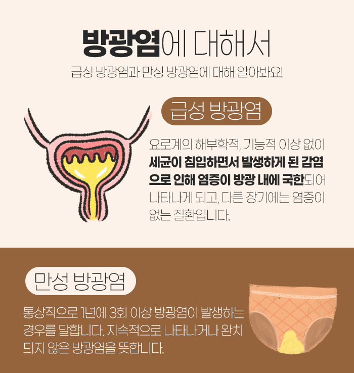 여성의 경우 자주 세척을 하는 경우가 많은데 이는 정상 세균을 사멸시키게 되면서 오히려 방광암을 유발시키는 세균을 증가시키게 될 수 있습니다. 또 폐경기 이후 재발했다면 여성호르몬을 보충해주는 게 도움이 된답니다.