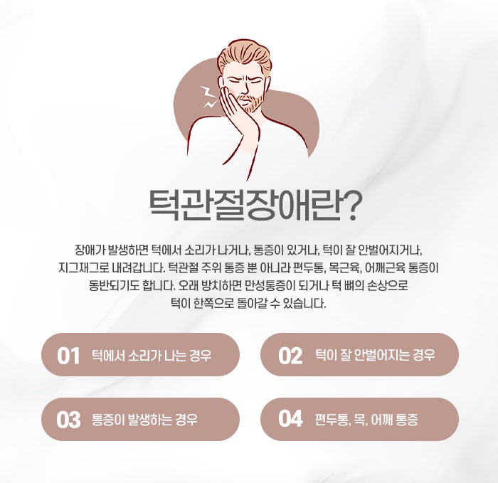 턱관절은 하악골과 두개골이 만나는 부위로, 구강 내에서 음식을 씹거나 말할 때, 심지어 웃거나 입을 크게 벌릴 때도 중요한 역할을 합니다. 턱관절은 이소관절로, 연골로 덮인 관절면과 디스크가 함께 작용하여, 하악골이 상악골과 부드럽게 연결되도록 돕습니다. 턱관절은 하루에도 수천 번 이상 움직이며 근육과 함께 협동하여 기능합니다. 그러나 이 턱관절이 비정상적으로 움직이거나, 근육의 과도한 사용, 구조적인 문제 등이 생기면 다양한 증상이 나타날 수 있다고 원주턱관절한의원에서는 말합니다. 턱관절 장애의 주요 증상은 턱에서 나는 소리입니다. 이 소리는 일반적으로 '딸깍', '끼익' 등으로 표현되며, 관절이 제대로 맞물리지 않아 생깁니다.