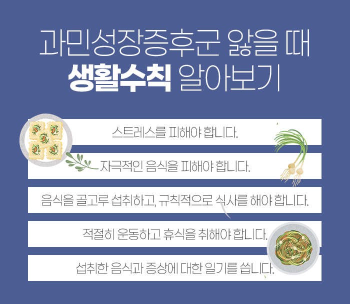 그리고 편식을 하거나 식사 시간이 규칙적이지 않은 경우가 많은데요. 이런 경우 필요한 영양소를 제대로 흡수하지 못하게 되는 것은 말할 것도 없습니다. 그래서 음식을 골고루 섭취하면서 규칙적으로 식사를 해야 합니다.