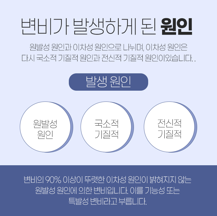 그리고 이렇게 변비가 발생하게 되는 이유에 대해 살펴보자면 원발성 원인과 이차성 원인으로 나눌 수 있는데요. 여기서 이차성 원인은 다시 국소적 기질적 원인과 전신적 기질적 원인으로 나뉜답니다.