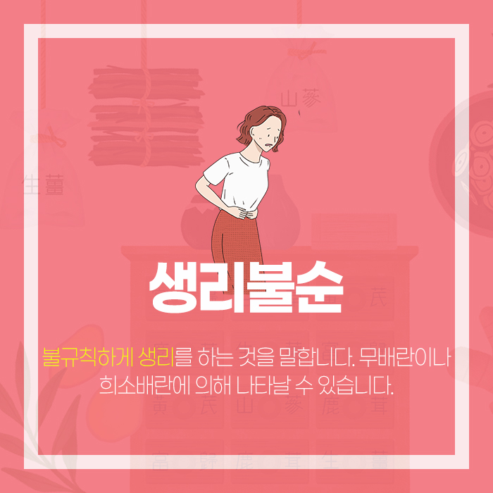 그리고 생리불순은 불규칙하게 승리를 하는 것을 말하는데요. 무배란이나 희소 배란에 의해서도 나타날 수 있습니다. 이렇게 생리불순이 발생하게 되는 이유에 대해 알아보자면 정말 여러 가지 원인들이 있는데요.