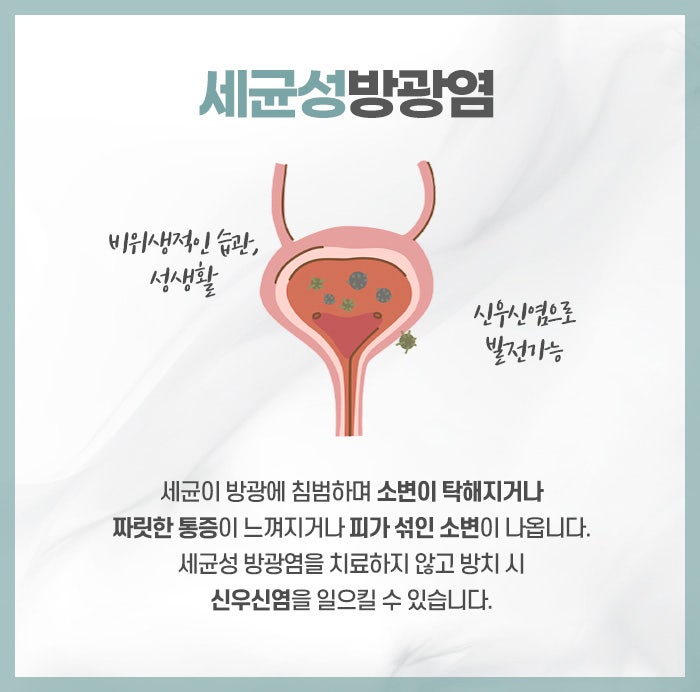 세균 감염이 주요 원인이며, 배뇨 습관이나 면역력 상태 등 여러 요인에 의해 발생할 수 있습니다. 초기 증상만으로도 불편함을 초래할 수 있지만, 적절한 치료와 예방을 통해 쉽게 관리할 수 있습니다. 따라서, 증상이 나타났을 때 빠른 진단과 치료가 필요하며, 재발을 막기 위해서는 일상적인 생활습관 개선과 위생 관리를 철저히 하는 것이 중요합니다.