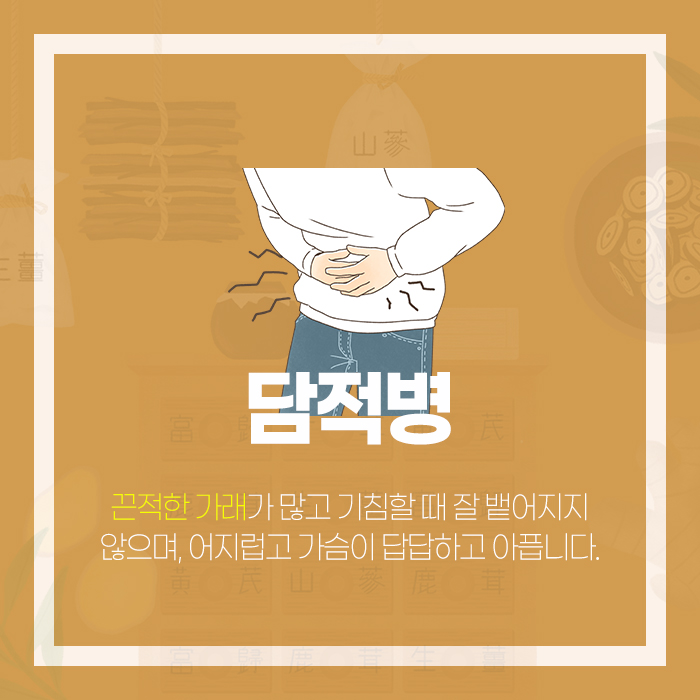 이러한 담적병은 구적 중 하나입니다. 담, 즉 가래가 가슴에 몰려 발생하게 되는데요. 이렇게 당뇨병을 앓게 되면 다음과 같은 증상이 나타나게 된답니다.