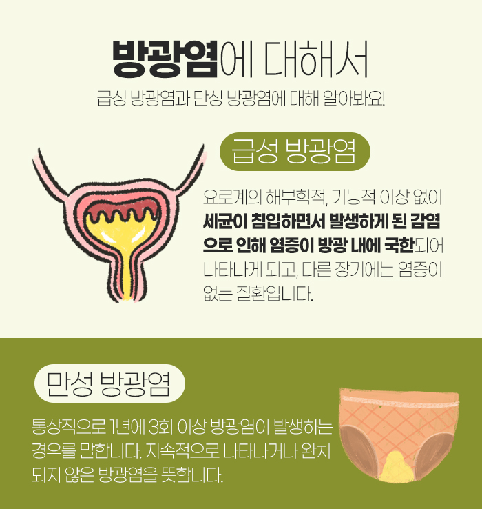 하지만 이렇게 볼 일을 자주 보러 가거나 요절박 등을 느낀다고 하더라도 반드시 방광염이라는 보정이 없습니다. 과민성 방광일 수도 있고 요실금에 의해서일 수도 있는데요. 그래서 자세히 진단 및 검사를 받도록 해야 합니다.