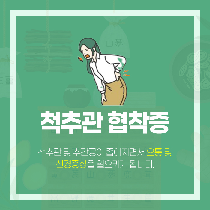그리고 이렇게 허리에서 통증이 나타나게 될 때 척추관 협착증이나 허리디스크, 척추측만증 등을 앓고 있는 경우가 많은데요. 오늘은 그 중에서도 척추관 협착증에 대해 다루어보도록 하겠습니다.