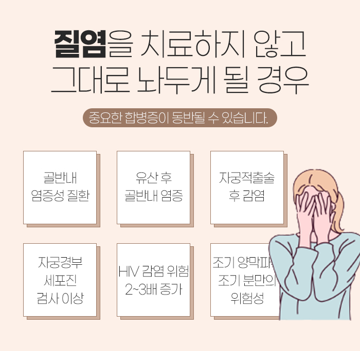 그리고 이러한 질염을 치료하지 않고 그대로 놔두게 되면 여러 가지 합병증을 동반하게 될 수 있는데요. 골반 내 염증성 질환이 발생하거나 자궁경부 세포진 검사 이상, HIV 감염 위험 증가 등이 나타날 수 있습니다. 그래서 자주 재발하는 질염 때문에 스트레스를 받으시는 분들이 무실동주말진료한의원을 찾게 되시는 경우가 적지 않은 것인데요.