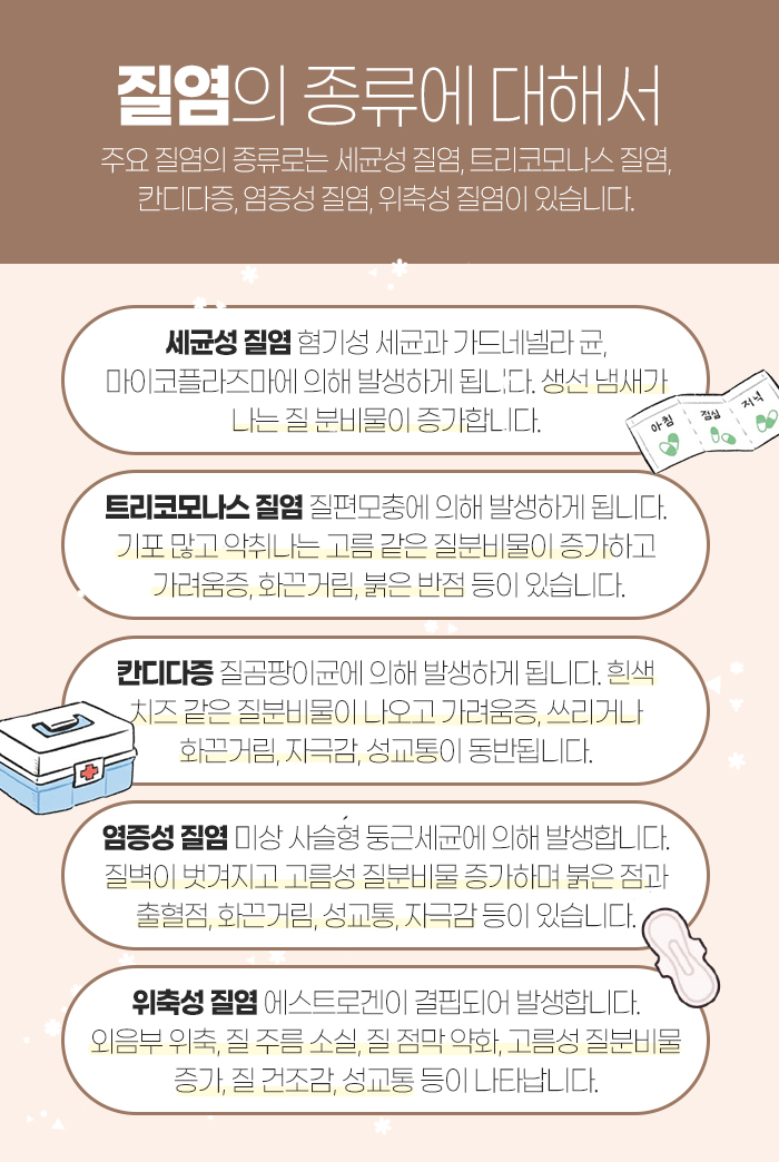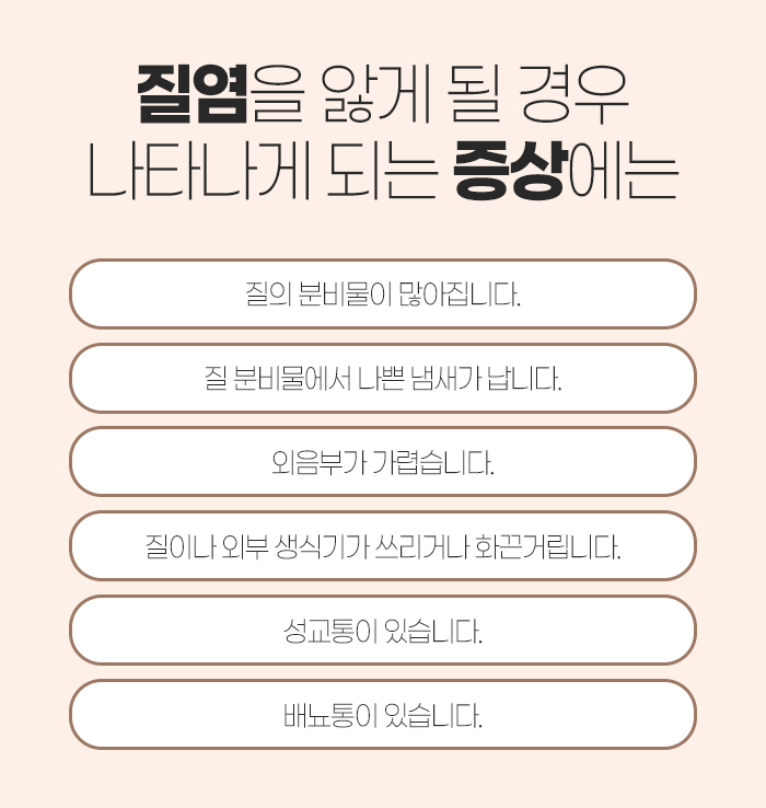 그리고 질염을 앓게 되면 다음과 같은 증상이 나타나게 되는데요.
