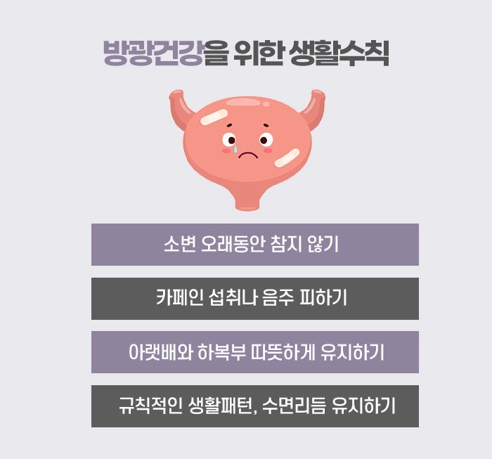 일정 시간 동안 배뇨를 참는 연습을 통해 방광의 수용 능력을 늘리고, 과도한 민감도를 줄이는 방식입니다. 예를 들어 처음에는 1시간 간격으로, 이후 1시간 30분, 2시간으로 점차 늘리는 식으로 훈련하며 방광 조절력을 회복할 수 있습니다. 카페인과 알코올 섭취를 줄이고, 짠 음식이나 자극적인 음식도 피하는 것이 좋습니다. 이들 식품은 방광을 자극하거나 체내 수분 배출을 증가시켜 빈뇨를 악화시킬 수 있기 때문입니다. 또한 체온을 따뜻하게 유지하는 것도 중요합니다.