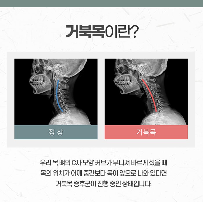 거북목은 현대인에게 매우 흔하게 나타나는 자세 이상 증후군 중 하나로, 목이 정상적인 정렬 상태에서 앞으로 빠져나오고, 어깨는 말리며 등이 굽는 형태로 나타나는 자세적 문제입니다. 정식 의학 용어로는 ‘거북목 증후군’ 혹은 ‘경추 전만 감소 증후군'이라고 하며, 거북이가 목을 앞으로 쭉 내민 모습과 닮았다고 하여 흔히 ‘거북목’이라는 이름으로 불립니다. 과거에는 노화나 특정 직업군에서 주로 나타났던 증상이나, 최근에는 스마트폰, 컴퓨터, 태블릿 사용의 급증으로 인해 남녀노소를 불문하고 광범위하게 퍼지고 있으며, 특히 학생과 직장인, 스마트폰 사용 시간이 긴 사람들에게서 매우 흔히 관찰된다고 원주거북목한의원에서는 말합니다.