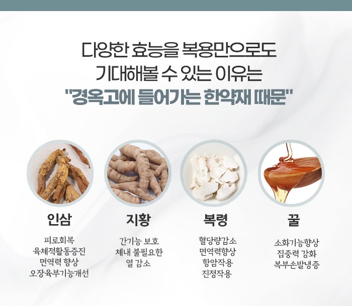 다양한 약재들이 서로 협력하여 몸 속 혈액을 원활하게 순환시키고, 혈액의 질을 향상시킴으로써 면역력을 높이고, 체내 노폐물 제거를 돕습니다. 또한 경옥고는 체내의 진액을 보충하여 몸을 촉촉하게 만들고, 피부를 건강하게 가꿔줍니다. 둘째, 경옥고는 면역력 강화에 매우 도움이 됩니다. 면역력을 높이는 성분들이 다수 포함되어 있어, 몸이 외부의 질병에 쉽게 저항할 수 있도록 돕습니다. 황기와 숙지황 등의 성분이 체내에서 면역 세포들의 활성을 돕고, 외부로부터 들어오는 유해균이나 바이러스와의 싸움에서 유리한 상황을 만들어준다고 무실동경옥고한의원에서는 말합니다. 특히 면역력이 약해지기 쉬운 겨울철이나 건강이 쇠약해진 사람에게는 경옥고가 큰 도움이 될 수 있습니다. 셋째, 경옥고는 혈당을 조절하는 데에도 도움을 줄 수 있습니다. 혈당 수치를 안정시키는 성분이 포함되어 있기 때문에, 혈당이 불안정하거나 당뇨가 있는 사람에게도 유익합니다.