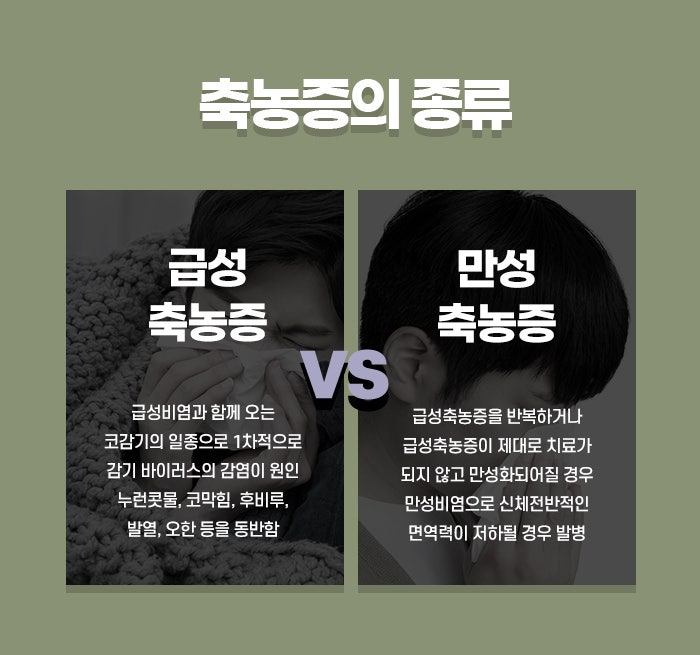 그런데 이런 부비동의 배출구가 막히게 되면 점액이 고이고 세균이나 바이러스가 번식하면서 염증이 생기고, 결국 고름이 생기면서 통증, 코막힘, 누런 콧물 등의 다양한 증상이 지속됩니다. 원주주말진료한의원축농증은 급성과 만성으로 구분되며, 급성 축농증은 보통 감기나 독감 등 상기도 감염 후에 발생하여 4주 이내에 증상이 호전되는 경우를 말하고, 만성 축농증은 12주 이상 증상이 지속되며 반복적으로 재발하거나 증상이 약하게 계속 유지되는 상태를 말합니다. 만성 축농증은 한 번 발병하면 일상생활에 불편함을 주고 치료가 길어질 수 있어 초기에 관리하는 것이 매우 중요합니다. 축농증의 원인은 매우 다양하며 여러 요인이 복합적으로 작용할 수 있습니다. 가장 흔한 원인은 감기나 독감 등 바이러스 감염입니다.