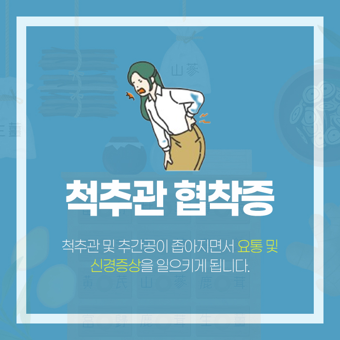 그리고 이러한 척추관 협착증에 대해 말해보자면 척추 중앙의 척추관, 신경근관이나 추간공이 좁아지게 되면서 허리에 통증을 유발하게 되거나 다리에 복합적인 신경 증세를 일으키게 되기 때문입니다.