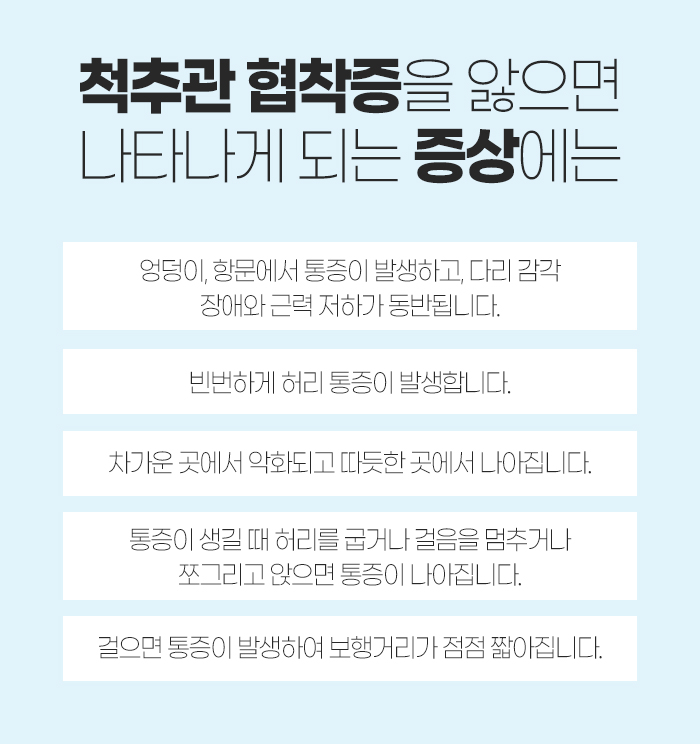 그래서 척추관 협착증을 앓게 되면 나타나게 되는 증상에 대해 말해보자면 다음과 같답니다.