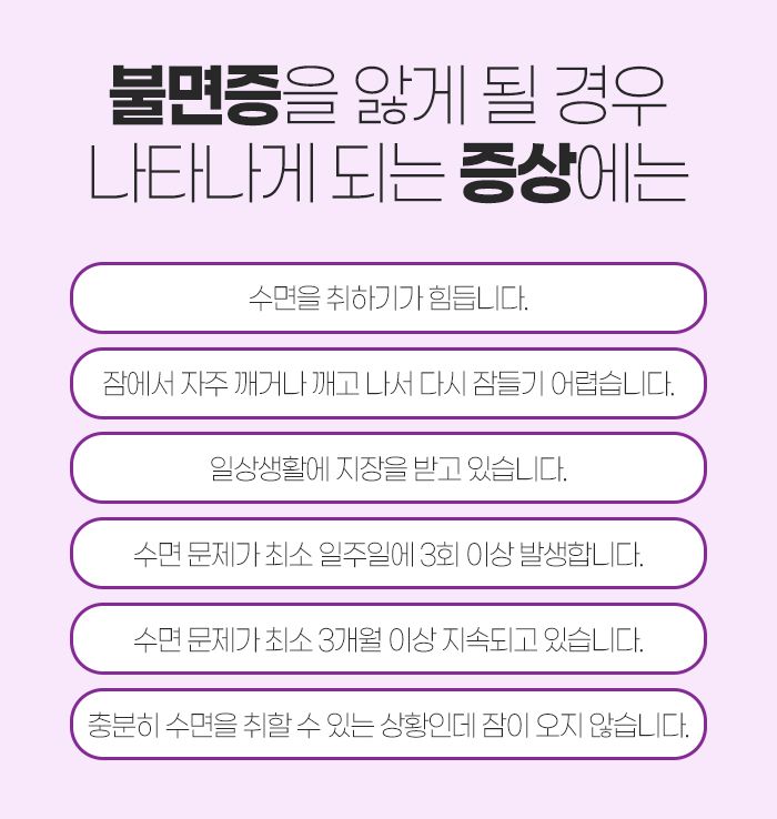 그리고 불면증은 앓게 되면 다음과 같은 증상이 나타나는데요.