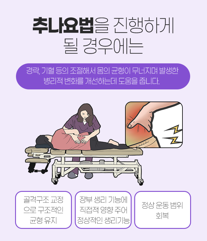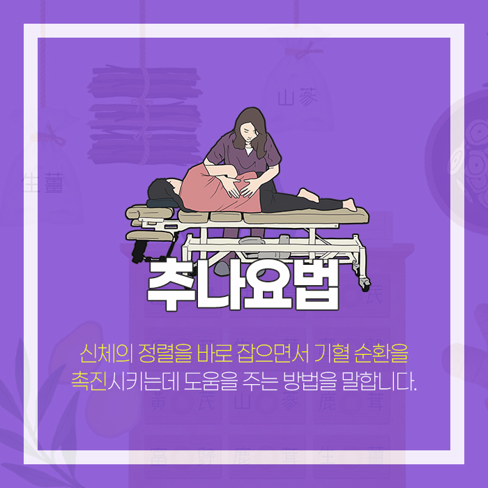 우선 추나요법은 한의사가 직접 손이나 보조기구를 이용해 밀고 당기는 자극으로 신체의 정렬을 바로 잡으면서 기혈 순환을 촉진시키는데 도움을 주는 방법이랍니다. 말한답니다. 그렇기에 다음과 같은 경우에 해당될 때 추나요법을 통해 무실동일요일한의원 등을 찾으시는 경우가 많습니다.