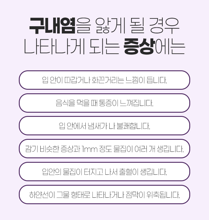 그리고 구내염을 앓게 될 경우 다음과 같은 증상이 나타나게 되는데요.