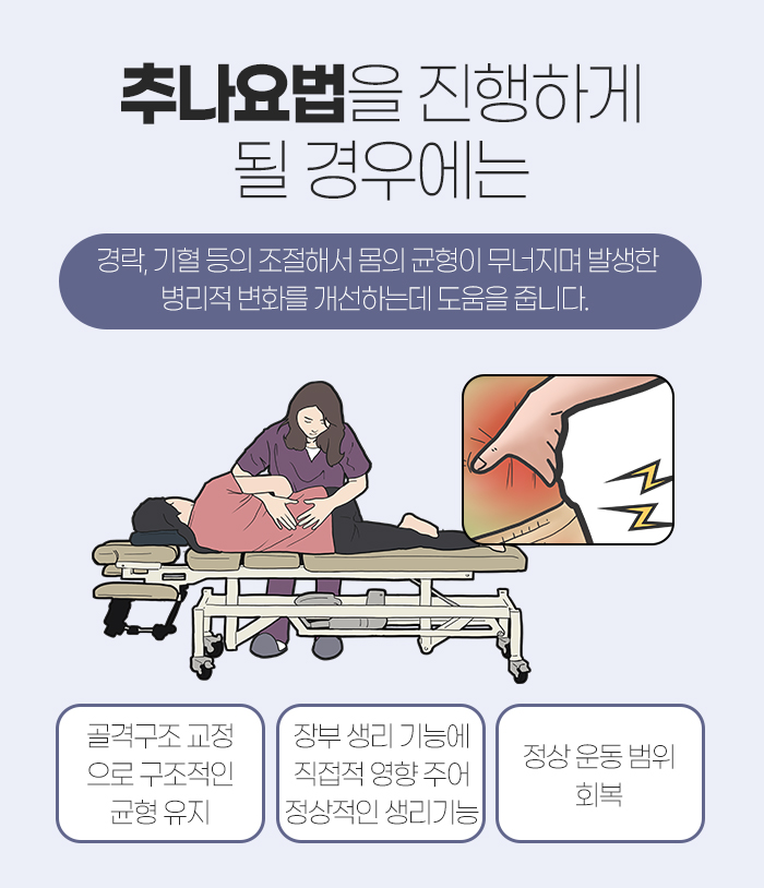 골격 구조를 교정하는 것을 통해 구조적인 균형을 유지하는데 도움을 주고, 장부의 생리기능에 직접적으로 영향을 주면서 정상적인 생리기능을 할 수 있도록 돕습니다. 또한 정상 운동 범위를 회복하는 데도 도움을 받으실 수 있는데요.