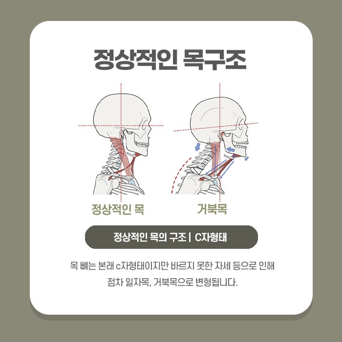 거북목은 단순히 나쁜 자세의 결과가 아니라, 바쁜 일상 속에서 몸이 보내는 ‘쉬어 달라’는 신호일지도 모릅니다. 오랜 시간 고개를 숙이고 살아온 우리의 몸은 결국 무게를 견디지 못하고 통증으로 말하기 시작합니다. 하지만 다행히 거북목은 꾸준한 관리와 노력으로 충분히 회복이 가능합니다. 하루아침에 교정되지는 않지만, 작은 습관의 변화가 큰 변화를 만듭니다. 오늘부터 5분이라도 자세를 바로 세우고, 스트레칭을 하며, 내 몸의 피로를 어루만지는 시간을 가지십시오. 거북목으로 인해 불편함을 느끼는 지금이 바로 몸과 마음을 다시 돌볼 수 있는 기회입니다. 당신의 몸은 스스로 회복할 수 있는 힘을 가지고 있습니다.