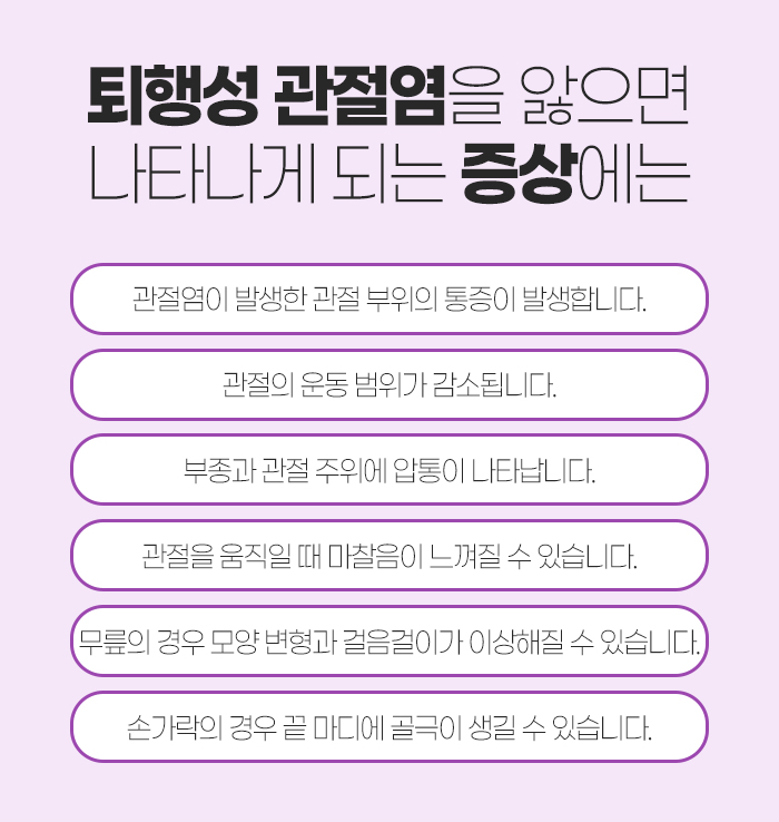 ㅁ 관절염이 발생한 관절 부위에서 통증이 생깁니다.