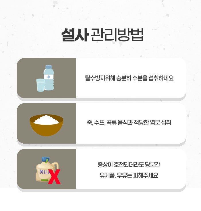 생활관리법의 핵심은 첫째, 수분과 전해질을 잃지 않게 보충하는 것이고 둘째, 장을 자극하지 않으면서 회복을 돕는 식사와 휴식을 확보하는 것입니다. 물은 한 번에 많이 마시기보다 조금씩 자주 마시는 것이 좋고, 설사가 잦거나 땀을 많이 흘렸다면 전해질이 포함된 음료를 적절히 활용하는 것이 도움이 될 수 있습니다. 다만 너무 달거나 카페인이 들어 있는 음료는 오히려 장을 자극할 수 있으니 피하는 편이 좋습니다. 음식은 기름지고 자극적인 것, 찬 음식, 유제품, 술, 카페인 섭취를 잠시 줄이고, 흰죽이나 미음, 바나나, 토스트, 삶은 감자처럼 부담이 적은 식사를 천천히 섭취하는 것이 좋습니다. 배가 고프지 않더라도 조금씩 나누어 먹어 위장에 부담을 줄이고, 증상이 잦아들면 단백질과 채소를 서서히 늘려 균형을 맞추는 방식이 좋습니다. 위생 관리도 중요하여 손 씻기를 철저히 하고, 특히 감염성 설사가 의심될 때는 수건과 식기를 분리하는 등 주변 사람에게 옮기지 않도록 주의하는 것이 필요합니다. 스트레스가 영향을 주는 경우에는 수면 시간을 일정하게 유지하고, 과로를 줄이며, 복식호흡이나 가벼운 산책 같은 부담이 적은 활동으로 긴장을 풀어주는 것이 도움이 될 수 있다고 무실동설사한의원에서는 말합니다.