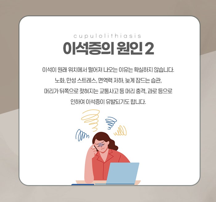 이석증이 생기는 원인은 이석이 왜 떨어져 나왔는지와, 어디로 들어갔는지를 함께 생각해볼 수 있습니다. 이석은 원래 전정기관 안에서 중력과 가속을 감지하는 데 관여하는데, 나이가 들며 내이 구조가 예민해지거나, 미세한 퇴행 변화로 인해 이석이 떨어져 나올 수 있습니다. 머리를 부딪치거나 가벼운 외상을 겪은 뒤 나타나는 경우도 있고, 갑작스러운 체력 저하나 수면 부족, 과로 이후에 생기는 경우도 있습니다. 오래 한 자세로 누워 지내거나, 병원 입원 등으로 활동량이 줄어든 뒤 나타나는 사람도 있으며, 편두통과 연관이 있다고 느끼는 사례도 있습니다. 골밀도 저하나 비타민 D 부족이 이석의 안정성과 연관될 수 있다는 관점도 있어, 전반적인 몸 상태가 취약해진 시기에 더 잘 나타난다고 느끼는 경우가 있다고 원주이석증한의원에서는 강조합니다.