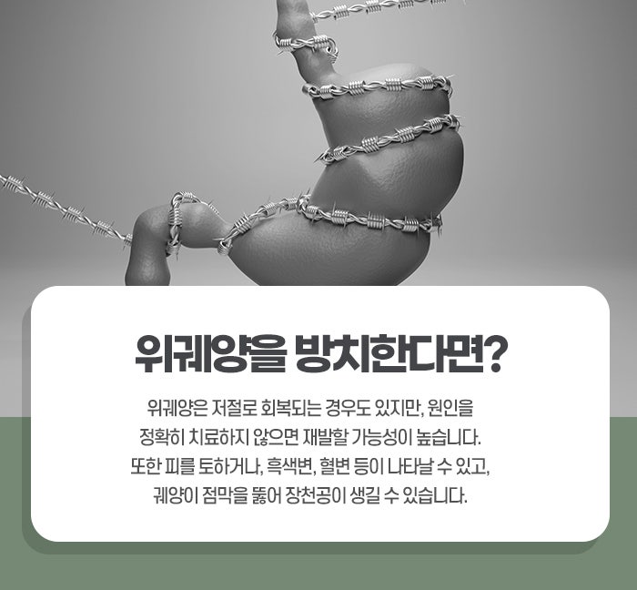 통증은 쥐어짜듯 아프거나 타는 듯한 느낌으로 표현되기도 하며, 특정 시간대에 반복적으로 나타나 “늘 그 시간에 속이 불편하다”는 패턴을 보일 수 있습니다. 소화가 잘 안 되고 트림이 자주 나오거나, 속이 메스껍고 구역감이 느껴질 수 있으며, 조금만 먹어도 배가 금방 부른 느낌이 들기도 합니다. 식욕이 떨어져 식사량이 줄고 체중이 감소하는 경우도 있으며, 속이 불편해 잠을 설쳐 피로감이 늘어날 수 있습니다. 다만 위궤양은 통증이 뚜렷하지 않은 경우도 있어, 계속되는 소화 불편이나 이유 없는 빈혈, 검은색 변 같은 신호가 나타난다면 더 주의 깊게 살펴야 합니다. 위궤양을 방치하면 점막 손상이 더 깊어지면서 통증이 잦아지고 일상생활이 크게 불편해질 수 있습니다. 궤양 부위에서 출혈이 생기면 빈혈로 이어져 어지럼, 심한 피로감, 숨이 찬 느낌이 동반될 수 있고, 출혈량이 많을 때는 급격히 컨디션이 떨어질 수 있습니다. 또한 궤양이 반복되거나 깊어지면 위벽이 약해져 심한 경우 천공처럼 위벽에 구멍이 생기는 상황으로 이어질 수 있어 매우 위험할 수 있다고 원주위궤양한의원에서는 말합니다.