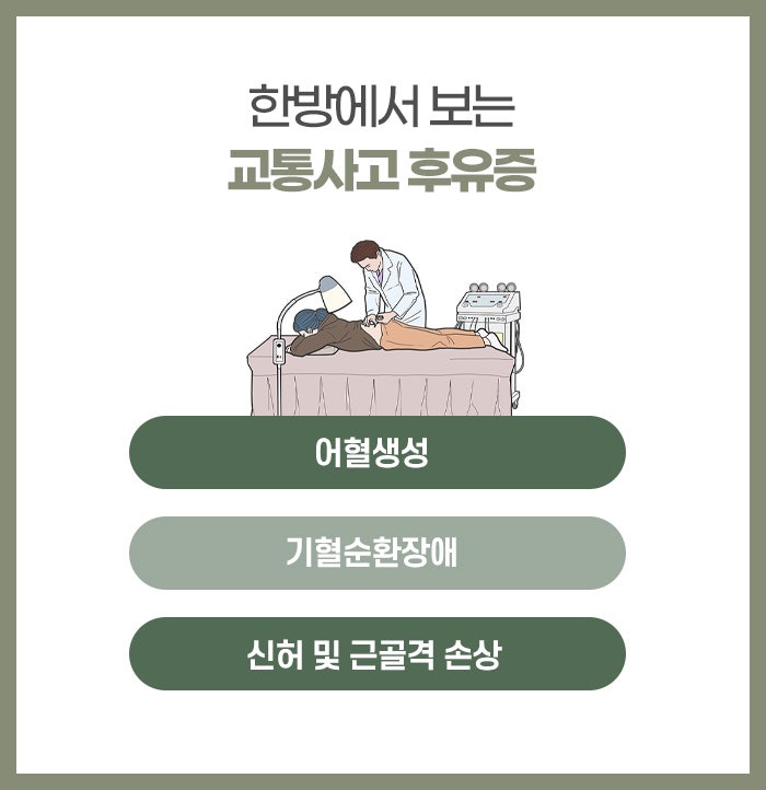 특히 주목해야 할 부분은 심리적인 변화인데, 사고의 잔상이 계속 떠올라 가슴이 두근거리거나 작은 소리에도 깜짝 놀라고 잠을 쉽게 이루지 못하는 불면 증세가 나타날 수 있습니다. 무기력함이나 집중력 저하, 이유 없는 불안감 역시 사고 이후 신경계가 예민해지면서 나타나는 후유증의 일종이라고 원주입원실한의원에서는 말합니다. 이러한 증상들을 사고 규모가 작았다는 이유로, 혹은 당장 뼈에 이상이 없다는 이유로 대수롭지 않게 여기고 방치하게 된다면 증상은 만성화되는 경로를 밟게 됩니다. 초기에는 단순한 근육통처럼 느껴졌던 불편함이 시간이 지나면서 디스크 질환이나 퇴행성 관절염으로 악화될 수 있으며, 몸속에 정체된 어혈이 풀리지 않으면 날씨가 흐리거나 피곤할 때마다 통증이 재발하는 고질적인 병증으로 고착화될 위험이 큽니다.