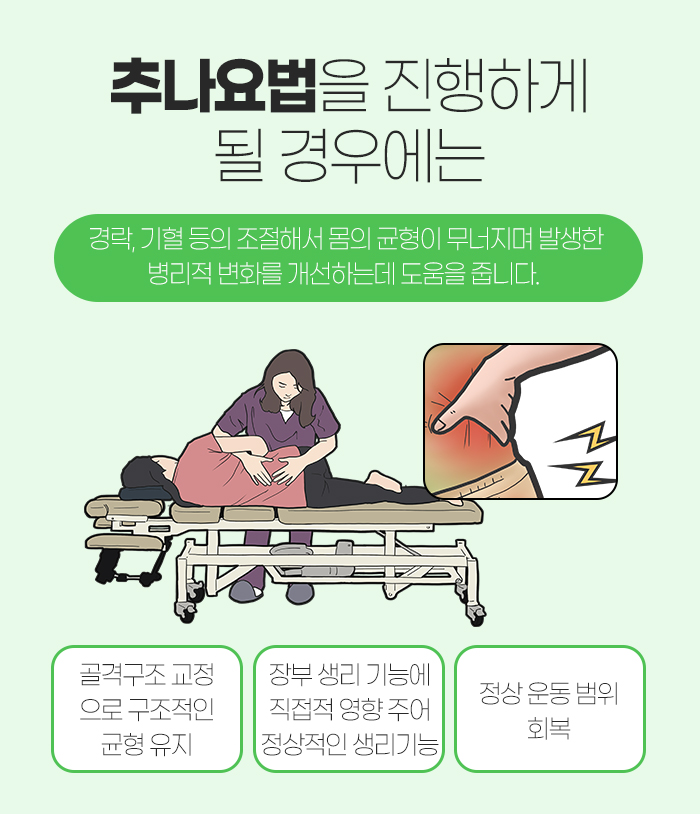 골격 구조를 교정하면서 구조적인 균형을 유지하는데 도움을 주고, 장부의 생리기능에 직접적으로 영향을 주기 때문에 정상적으로 생리기능을 하는데 도움을 받아보실 수 있습니다. 또 정상 운동 범위를 회복하는 데도 도움을 받아보실 수 있는데요.