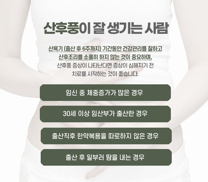 새 생명을 탄생시키는 숭고한 과정을 마친 여성의 몸은 기력이 크게 소모되고 골격과 근육이 평소와는 비교할 수 없을 정도로 느슨해진 상태에 놓이게 되는데 이때 몸을 제대로 돌보지 못하여 발생하는 여러 불편함을 산후풍이라고 부릅니다. 산후풍이 발생하는 배경에는 임신 중 태아가 원활하게 나올 수 있도록 관절과 인대를 부드럽게 만드는 릴랙신이라는 호르몬의 영향이 큽니다. 이 호르몬으로 인해 전신의 마디마디가 벌어지고 약해진 상태에서 출산 후 갑작스럽게 찬 기운에 노출되거나 몸을 과도하게 움직이게 되면 그 틈으로 냉기가 스며들어 통증을 유발하게 되기에 원주산후관리가 필요합니다.