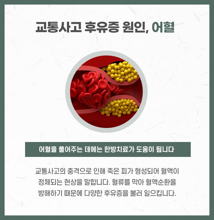 또한 단순히 통증을 없애는 것에 그치지 않고, 몸 전체의 균형을 바로잡고, 마음의 상처까지 돌보는 전인적 치유가 이루어져야 진정한 회복이라고 할 수 있습니다. 교통사고 후유증은 단순히 시간을 두고 견디는 것이 아니라, 올바른 방법으로 몸과 마음을 세심하게 보살펴야 합니다. 초기부터 세심한 관심과 꾸준한 관리를 통해 후유증 없이 건강한 일상으로 돌아가는 것, 그것이 내 삶을 지키는 가장 현명한 방법입니다.