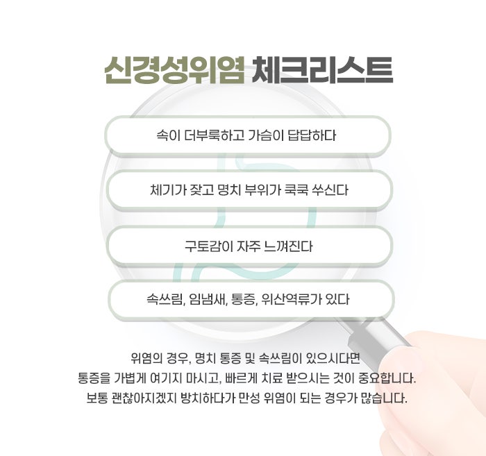 신경성 위염은 다른 위염과 유사한 증상을 보이지만, 그 원인이 스트레스와 불안이라는 점에서 다릅니다. 이로 인해 신경성 위염의 증상은 종종 불규칙적이고 변동적입니다. 즉, 정신적 상태에 따라 증상이 심해지거나 개선됩니다. 신경성 위염의 가장 흔한 증상은 상복부 통증입니다. 이 통증은 위염의 대표적인 증상으로, 주로 식사 후 또는 공복에 더 심해지며, 속이 답답하고 불편한 느낌이 지속될 수 있습니다. 또한, 식사를 많이 하거나 자극적인 음식을 먹었을 때 통증이 심해질 수 있다고 무실동위장한의원에서는 말합니다. 소화 불량은 신경성 위염의 또 다른 특징적인 증상입니다. 위장이 정상적으로 음식을 소화하지 못하면서 더부룩하고 불편한 느낌을 주며, 가스를 자주 배출하거나 트림이 잦아질 수 있습니다. 이로 인해 속이 더부룩하고, 불쾌한 느낌이 지속되며 일상생활에 큰 불편을 초래합니다.