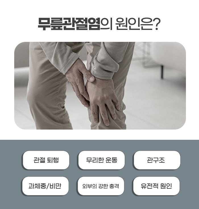 류마티스 관절염은 면역체계의 이상으로 자기 연골을 공격하는 자가면역질환으로, 염증이 전신 관절에 나타나며 무릎에도 영향을 미칠 수 있습니다. 외상 후 관절염은 이전에 발생한 무릎 부상이나 수술, 골절 등으로 인해 관절 구조가 변형되거나 연골이 손상되면서 발생합니다. 무릎관절염의 원인은 다양하지만 공통적으로 연골 손상과 관절 구조 변화가 핵심 요인입니다. 노화로 인해 연골이 자연스럽게 마모되는 것 외에도 과체중이나 비만으로 체중이 무릎 관절에 지속적으로 부담을 주는 경우, 반복적인 무릎 사용이나 과도한 운동, 스포츠 활동, 직업상 무릎을 많이 사용하는 활동 등이 관절염 발생 위험을 높입니다. 또한 유전적 요인, 호르몬 변화, 근육 약화나 불균형, 관절의 과거 부상, 관절 수술 이력도 중요한 원인으로 작용한다고 원주무릎관절염한의원에서는 말합니다.