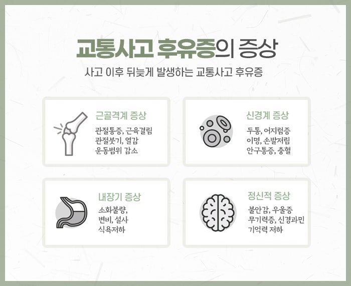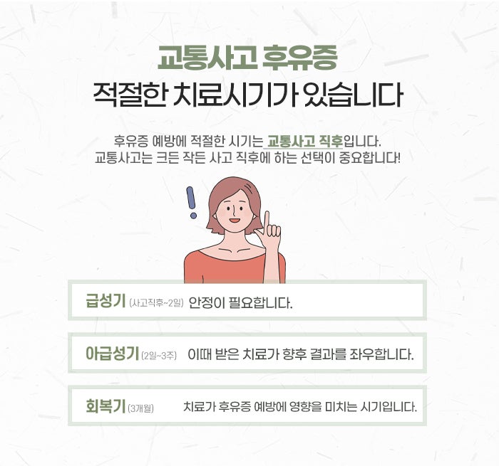 때로는 회복의 과정이 더디고 지칠 수 있지만, 가족과 주변의 지지를 받으며 스스로를 격려하는 마음이 가장 큰 힘이 됩니다. 교통사고 후유증을 겪는 분들이 있다면 혼자가 아님을 기억하시고, 삶의 균형을 회복해 나가며 다시금 건강한 일상을 누리실 수 있기를 바랍니다. 따뜻한 관심과 꾸준한 관리가 있다면 어떤 후유증도 충분히 치료 수 있으며, 시간과 함께 몸과 마음은 점차 회복의 길을 걸어갈 것입니다.