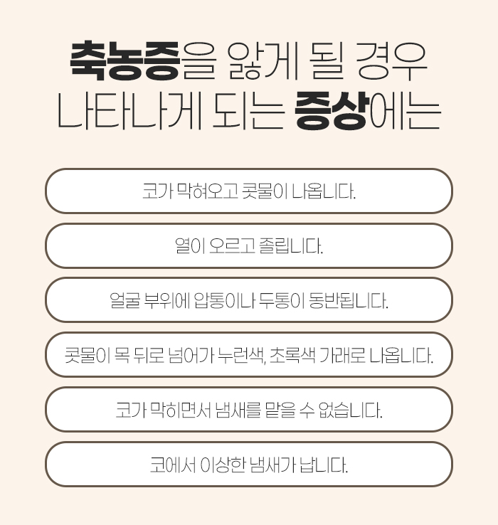 이러한 생활 수칙에 대해 말해보자면 평소 감기를 자주 앓는 경우 조기에 치료를 진행하는 것이 중요하답니다. 이는 감기 때문에 감기가 축농증으로 발전하는 경우가 적지 않기 때문입니다.