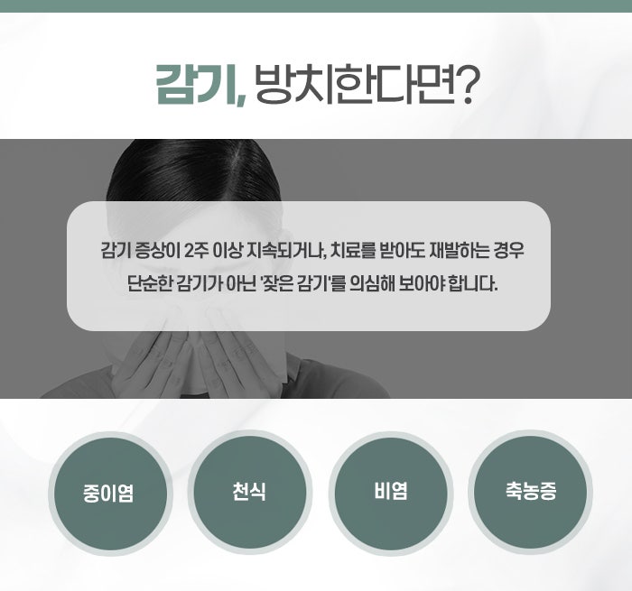 감기는 일반적으로 증상이 심하지 않고 일주일 내에 자연 회복되지만, 면역력이 약한 어린이, 노인, 만성질환자에서는 증상이 더 심해질 수 있습니다. 때로는 증상이 2주 이상 지속되거나 점점 악화될 경우에는 다른 합병증을 의심해야 한다고 무실동감기한의원에서는 말합니다. 감기를 방치할 경우 발생할 수 있는 문제들은 다양합니다. 대부분의 감기는 자연 치유되지만, 증상이 심하거나 면역력이 약한 경우에는 부비동염, 중이염, 폐렴, 기관지염 등의 합병증으로 발전할 수 있습니다. 특히 만성 질환을 가진 환자나 노약자, 어린이들은 감기가 폐렴 등 심각한 호흡기 질환으로 악화될 위험이 높습니다. 또한 감기 증상을 제대로 관리하지 않고 무리하게 활동하면 체력 저하가 심해지고 회복이 늦어지며, 이로 인해 감염이 더 오래 지속될 수 있습니다. 감기 바이러스에 의해 인후염이 심해지면 세균 감염이 2차적으로 발생할 수 있으며, 이 경우에는 항생제 치료가 필요할 수도 있습니다.