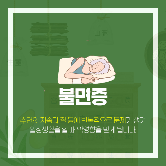 ㅁ 코골이나 하지불안 증후군 등이 있습니다.