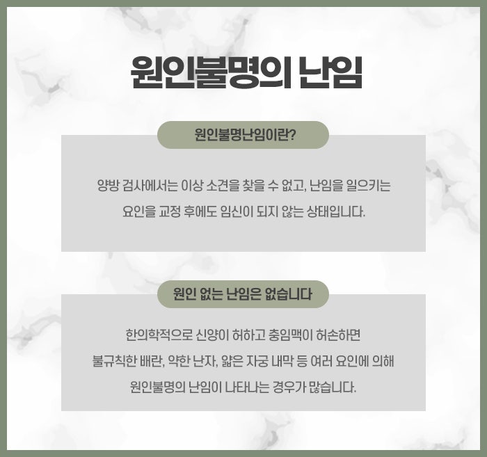 원주난임 단일 원인으로 발생하는 것이 아니기에