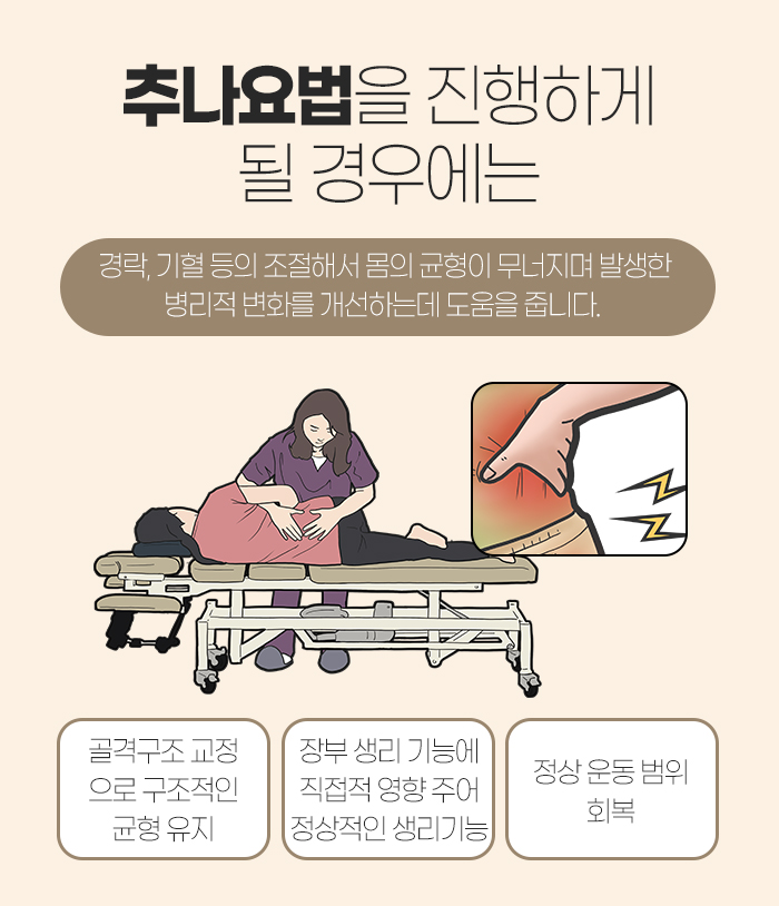 자세히 설명해 보자면 한의사가 직접 손이나 보조기구로 밀고 당기는 자극을 통해 신체의 정렬을 바로잡으면서 기혈 순환을 촉진시키는데 도움을 주는 방법을 말하는데요. 그래서 다음과 같은 경우에 해당될 때 무실동일요일한의원을 찾아주시는 분들이 많답니다.